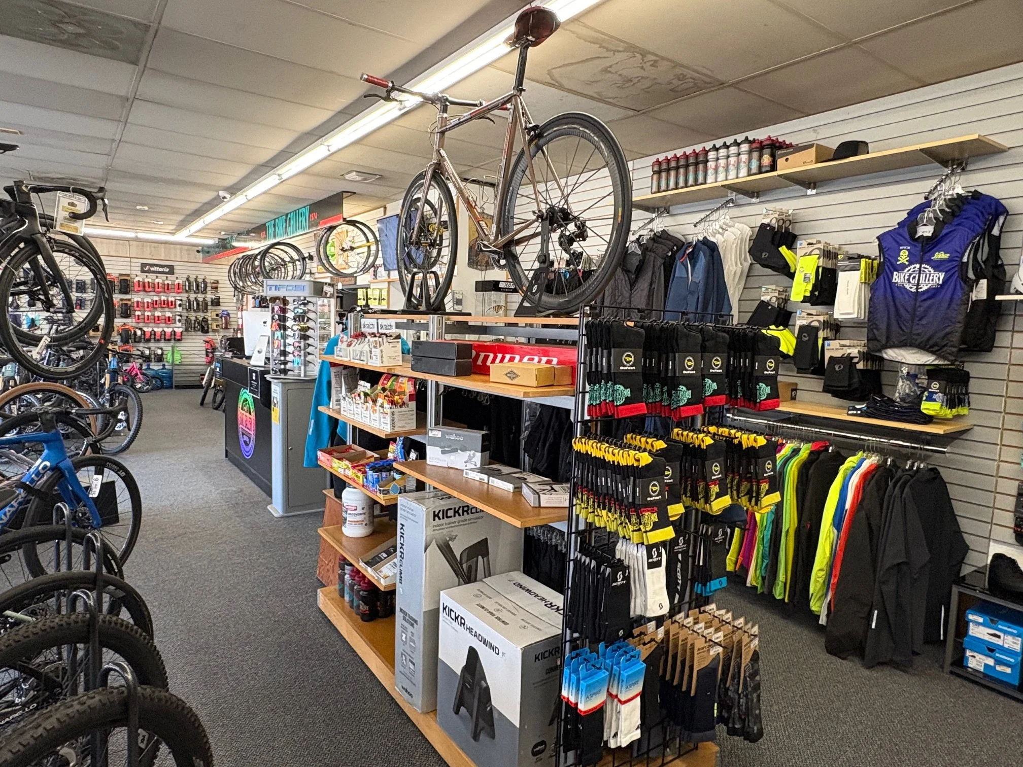 At The Bike Gallery, our custom ATHLOS kits are designed with quality in mind. You'll also find a full range of riding gear from Pearl Izumi, Mavic, and Louis Garneau, covering all your cycling needs from head to toe.